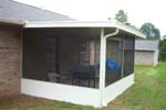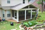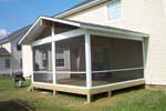 The Gabled Roof is another nice option available for your Screen Room. Again, we use the same roof panel that is used on our Sunrooms; the only difference being it is a "Half Snap" panel. The panel is a sandwich panel with aluminum on the bottom (your ceiling), 4" of foam insulation, and OSB on top. The roofing crew will come in after we are finished and shingle the roof to match your house. This roof system is tied into your existing house roof, therefore it tends to bring the total cost of the job up a little.