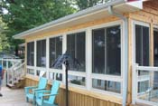 A Room Addition or Conventional Sunroom is a Sunroom that is built to match your house. We step away from the Prefabricated Sunrooms (primarily made from aluminum framing and a lot of glass) and we use 2" x 4" wood stud construction. We drywall and finish the inside of the room and match the outside to your existing exterior of your home. As with any Sunroom there are advantages and disadvantages. Below is a list of common differences between the Room Addition and a Prefabricated All Season Sunroom