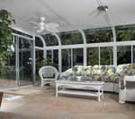 The Ventilated Solarium is another option for your Sunroom Addition. The Ventilated Solarium offers the most glass available in a Sunroom while still offering superior insulation protection and ventilation. The most common problem with Solariums is the heat. It is extremely hard to vent a Sunroom that is all fixed glass panels on the wall and roof. Operable Skylights help eliminate some of the heat but they and not able to handle the intense heat generated by a completely glass roof. The Ventilated Solarium is able to combat the heat by combining the Insulated Roof Panels with a Curved Glass Panel. The first 3/4 of the roof is comprised of the standard Insulated Roof Panels; the last 1/4 is a Curved Glass Panel. By also incorporating the standard Operable Window Wall System into the Ventilated Solarium you get maximum sunlight with maximum ventilation. Our two suppliers who offer the Ventilated Solarium are the Sun-Belt Sunroom and the Admiral Sunroom. Below is a list of Exclusive Features of each of the suppliers. Follow the LOGO links for more information. A list of Standard Options can be found at the bottom of the page.